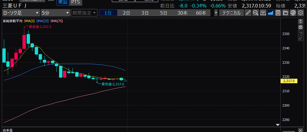 8306)三菱UFJFG 2324.5円で買い指値注文