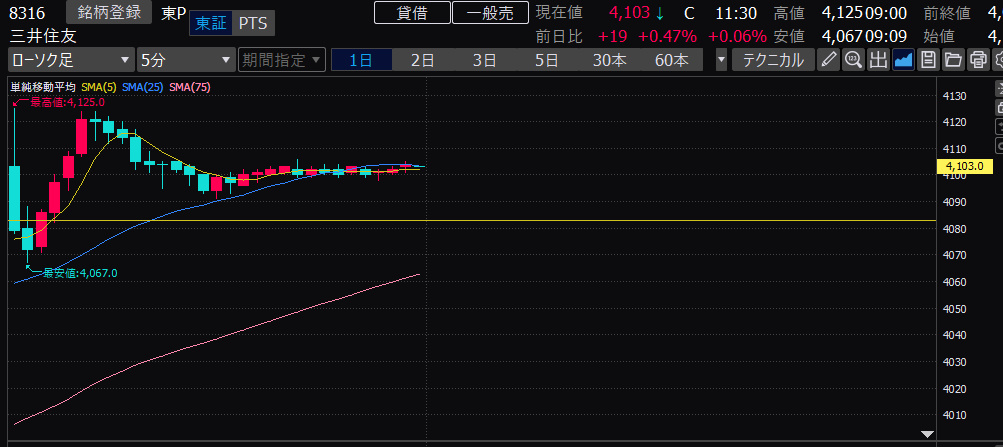 →寄り付き直後約定(前場中の最安値は4067円。なので、コレに関してもまずまず正解)