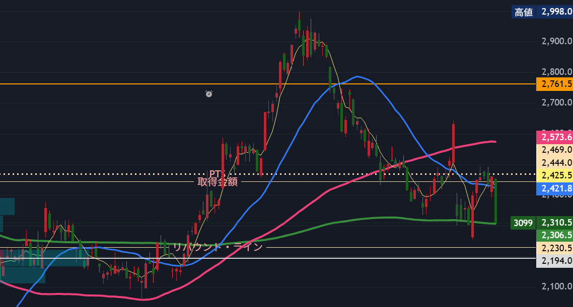△9/1 上昇しそうなので買い増し→取得単価3414 ホールド