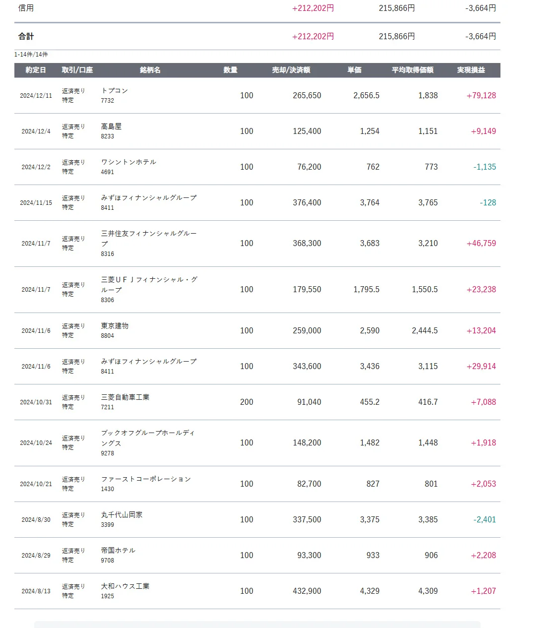 (具体的な内容としては、三菱UFJやみずほ、三井住友などの3大メガバンクに加えて驚異的に急騰したトプコンなどで利益を得たという要因が大きい)